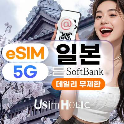 [일본] 일본이심 소프트뱅크 5G 로컬망 데일리 데이터 무제한 e심 핫스팟 eSIM 유심