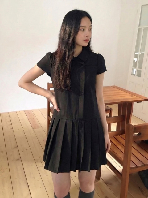 [가니송] 레이어 피크 원피스_블랙