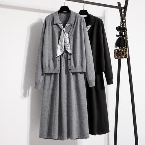 [넬리]스카프넥 가디건 원피스 세트_NC4OP005