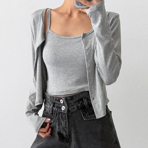[유야]여성 베이직 잔골지 무지 나시 가디건 세트 -FVC0225- 봄 가을