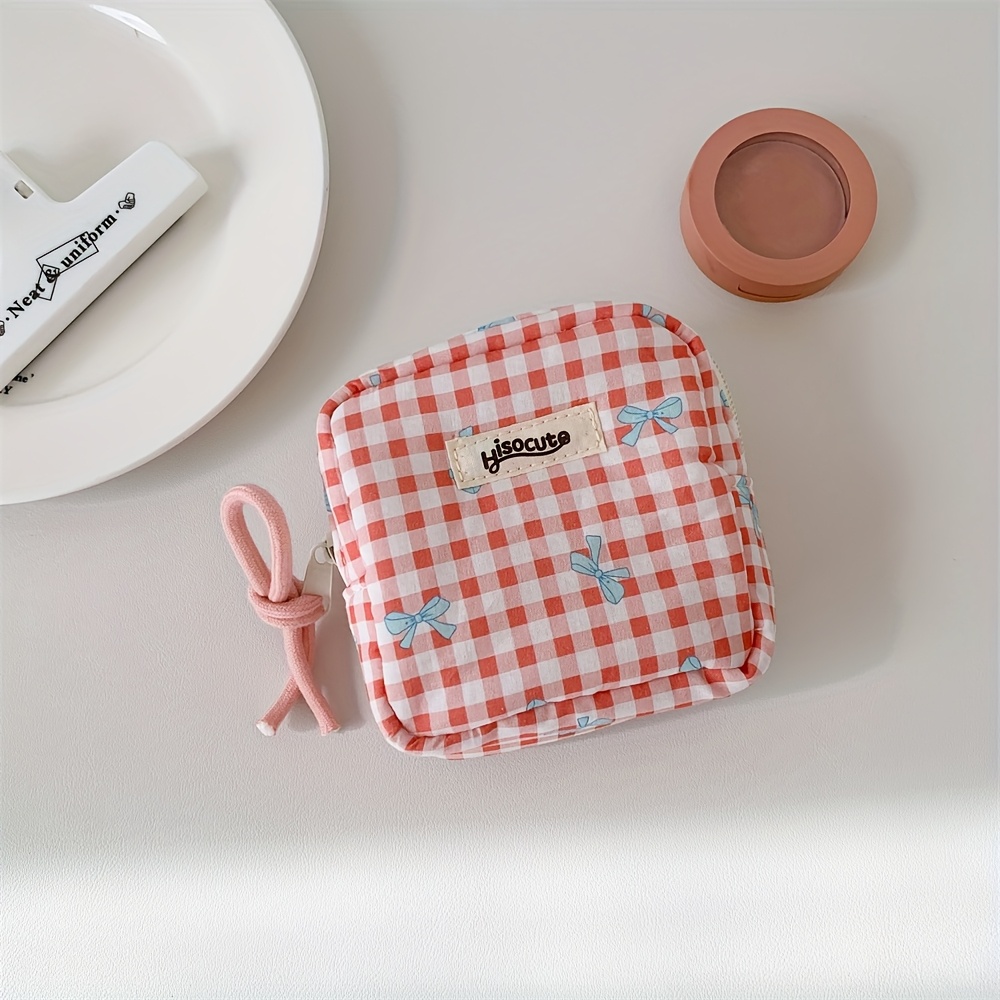 TEMU 소형 그리드 메이크업 파우치 스퀘어 무선 헤드셋 립스틱 정리함 화장품 보관 가방 (여성용)