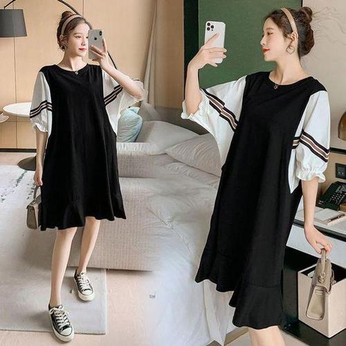 글램핏 / 베이직 가오리 3부 반팔 루즈핏 라운드 데일리 여름 롱 원피스 임부복 4컬러