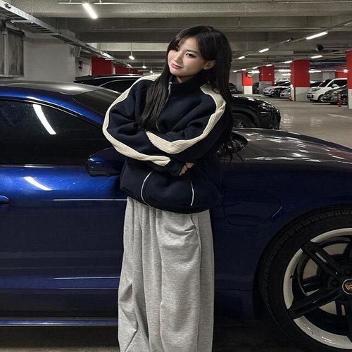 [원스톤][26SS] 팜므 니트 배색 라인 삥줄 집업 1color 자켓 봄 가을 신상 커플룩 가능