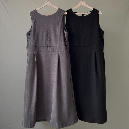 [옷자락] 여성 가을 하객 패션 민소매 뒷리본 속기모 핀턱 롱드레스