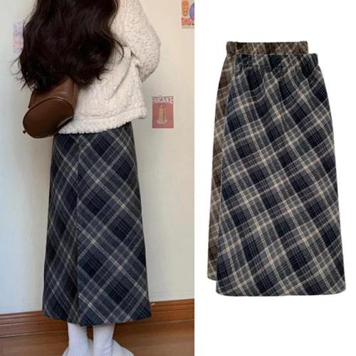 [옷자락]여성 가을 겨울 체크 패턴 롱스커트