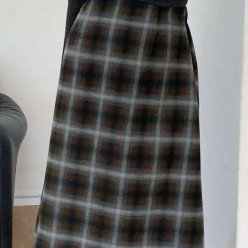 여성 스커트 H라인 체크 롱 가을 겨울 일자 처짐 슬림 트임 랩 원 픽4 OP4