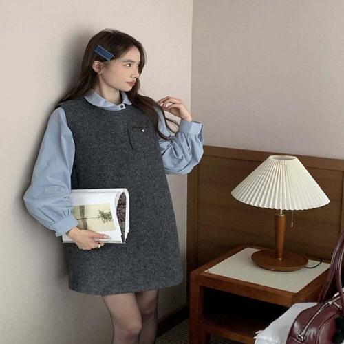 [오너클랜]인기상품 가을 겨울 데이트룩 단정 러블리 모직 미니원피스 [WFLRHSZ_260124]