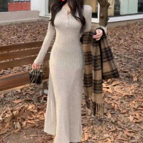[신상오픈런]여성용 가을 겨울 따뜻한 슬림핏 롱 니트 원피스 골지 디자인 (46120194)