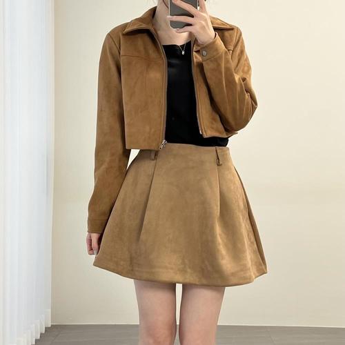 [옷자락]여자 스웨이드 A라인 핀턱 가을 벌룬핏 미니스커트