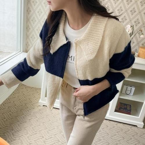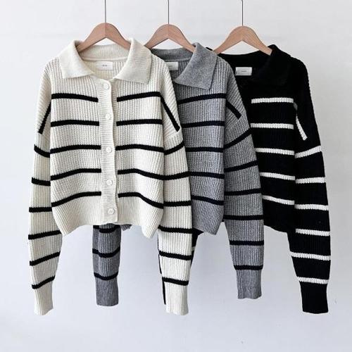 [신상오픈런]|CDJ449C|피드라 가을 가로줄 투웨이집업 가디건 롱슬리브 여성_18160764_597559