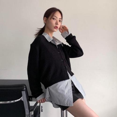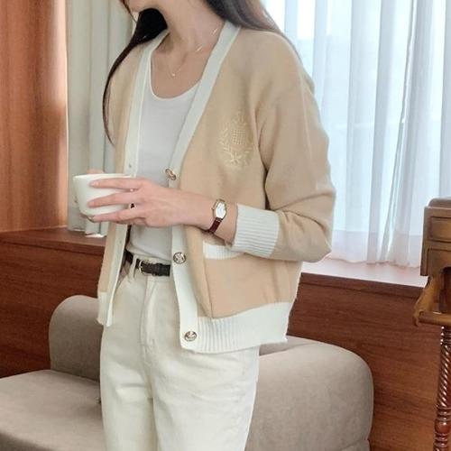 [신상오픈런]|CDJ4199|메로오 롱슬리브 가을 V넥 스웨터 배색 가디건 여성_18160273_597559