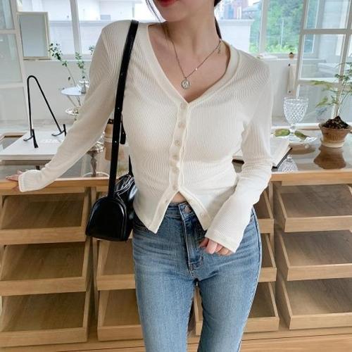 [다잇템]여성 V넥 롱슬리브 단추 가을용 가디건