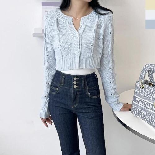 [신상오픈런]|KDJ4406|마브우 가디건 여성 짧은 심플 스웨터 꽈배기 가을 롱슬리브_18160555_597559