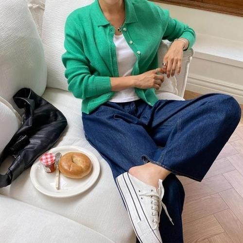 [다잇템]여성 카디건 카라 단추 롱슬리브 데일리 가을용