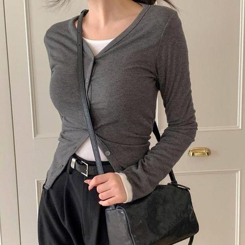 [신상오픈런]여성용 봄 가을 레이어드 소프트 니트 가디건 (46120396)