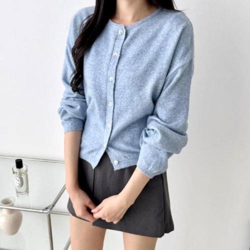 [신상오픈런]여성용 봄가을 기본 라운드넥 긴팔 니트 가디건 데일리 스타일 (46199035)