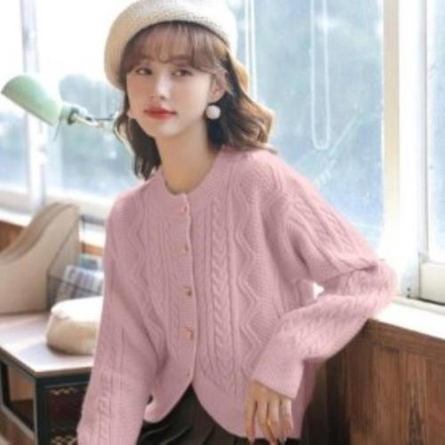 [신상오픈런]여성 두꺼운 니트 브이넥 꽈배기 버튼 퍼프 가을 카디건 (40734268)