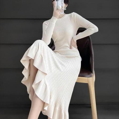 [신상오픈런]여성용 따뜻한 골지 롱 니트 드레스 가을 겨울 슬림핏 원피스 (46120195)