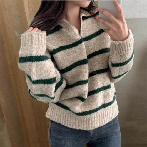 [신상오픈런]여성용 따뜻한 오픈카라 스트라이프 니트 가디건 가을겨울용 (45268911)