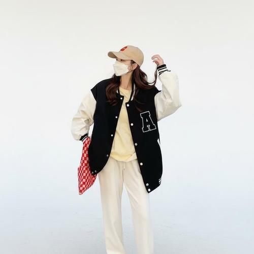 [신상오픈런]여성용 가을 겨울 오버사이즈 기모 자수 로고 야구 재킷 (46200576)