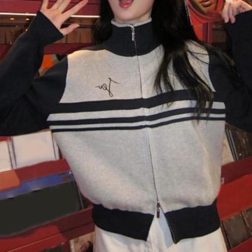 [신상오픈런]여성 봄가을 스포티 캐주얼 배색 크롭 짚업 니트 자켓 (46200644)