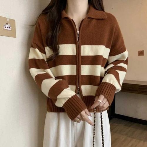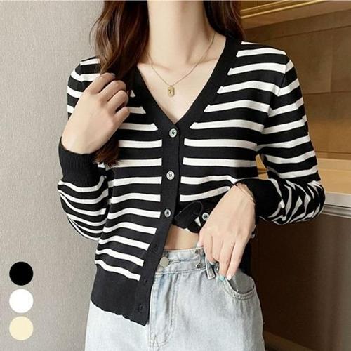 [엄지척]여성 가디건 가을 V넥 슬림 심플 아우터 스트라이프_19792746_667501