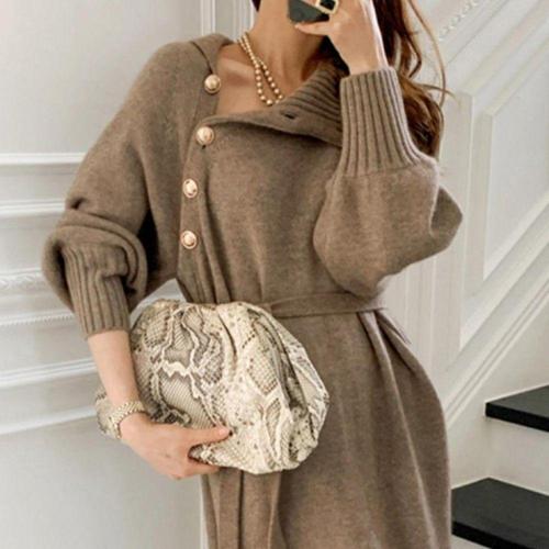 COSYEVNO 여성 봄가을 긴팔 니트 슬림 롱 원피스 스퀘어넥 배색 TZKzzlyq-10