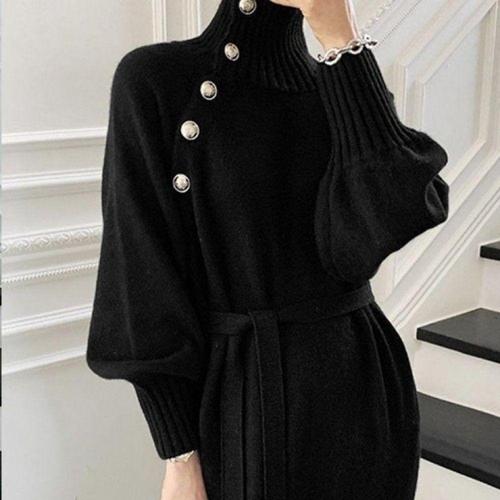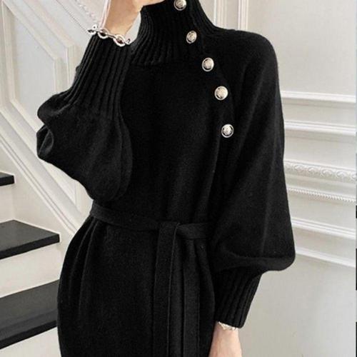 [오너클랜]인기상품 여성용 겨울 니트 터틀넥 롱원피스 블랙 가을 목폴라 드레스 [WFLKZL2_260304]