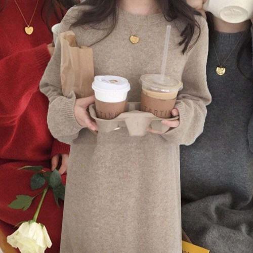 [오너클랜]인기상품 여성 데일리 롱니트 원피스 봄 가을 심플 무지 하객룩 [WFLL9YH_260304]