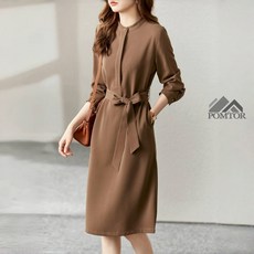 POMTOR 봄 가을 여성 조임 벨트 A라인 날씬해 긴팔 롱원피스 하객룩