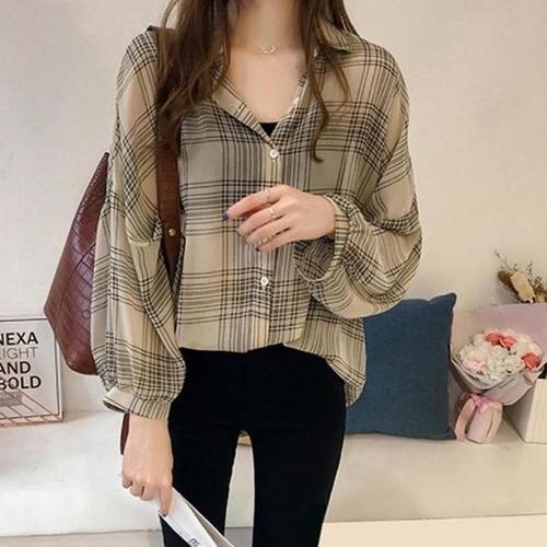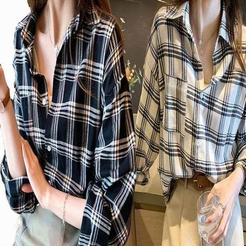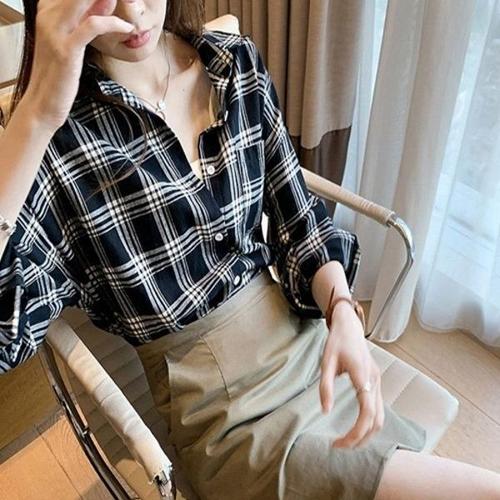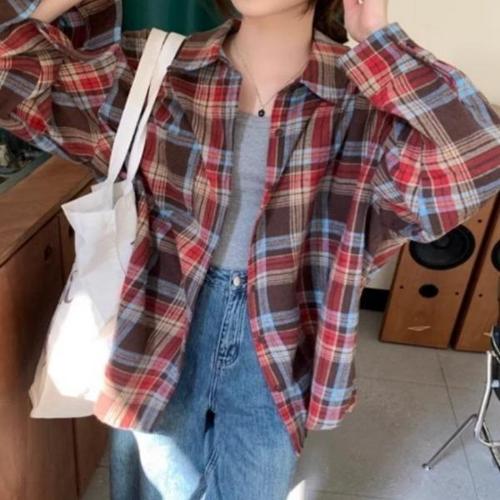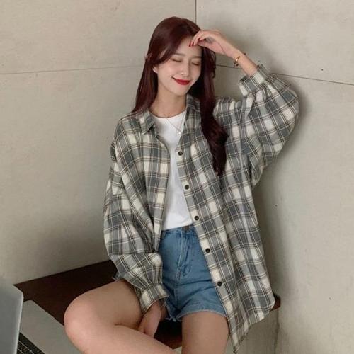 남방 봄가을 루즈핏 루즈핏 체크셔츠 대학생 여자 캐주얼