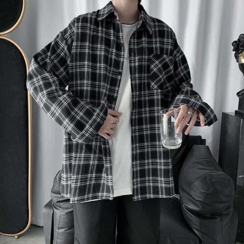 [셀럽하우스]체크셔츠 DZSC6271 루즈핏 간절기 남방 가을 남성 봄 남친룩