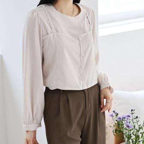 [다잇템][다잇템] 여자 코르셋 큰사이즈 가을하객룩 콩단추 블라우스_23387539_588872
