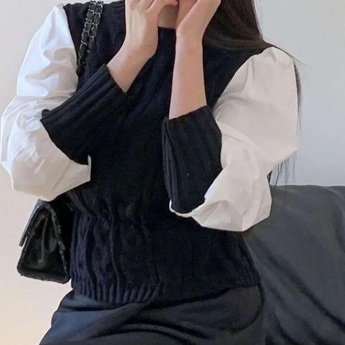 [디자이너몰]여성 가을 겨울 셔츠 배색 꽈베기 니트