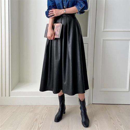 GGPX 심플 베이직 플레어 레더 롱 스커트 (GODWH004D)