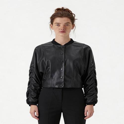 [벨 마르슈][벨 마르슈] 셔링 소매 포인트 신세틱레더 블루종자켓