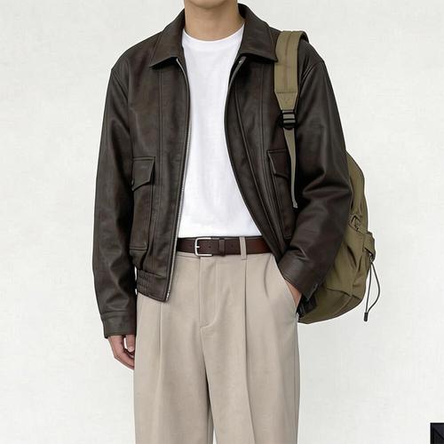 남성 봄가을 MAN-MADE 레더 세련된 가죽 점퍼 블루종 항공점퍼 발수 방풍 보온 방수 바람막이 3칼라/3