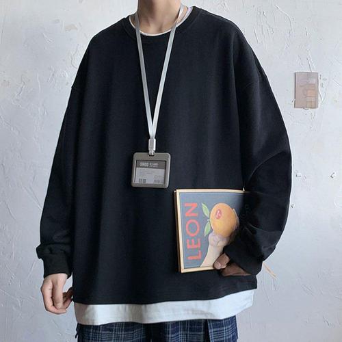 1+1/2P 세트 맨투맨 긴팔 티셔츠 남성용 라운드 티 루즈핏 심플 봄 가을 이너티 빅사이즈 남성상의 D99U