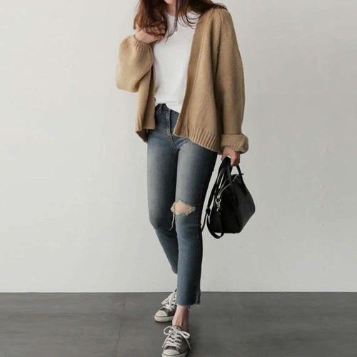간절기 간호사 가디건 네추럴 룩 학생 코디 외투 룩코디mno488