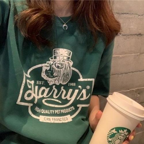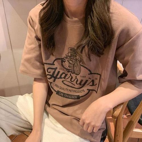 [엄지척]여성 여름 캐주얼 패션 강아지 프린팅 반팔 티셔츠_19554799_667501