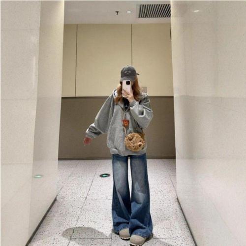 [오너클랜]인기상품 오버핏 그레이 후드 긴팔 강아지 자수 박스핏 후드집업 [WFLILN4_260301]