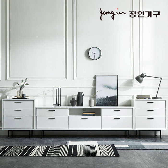 장인가구 [비밀특가] 루시퍼 화이트 다용도 수납 3000 거실장 세트A