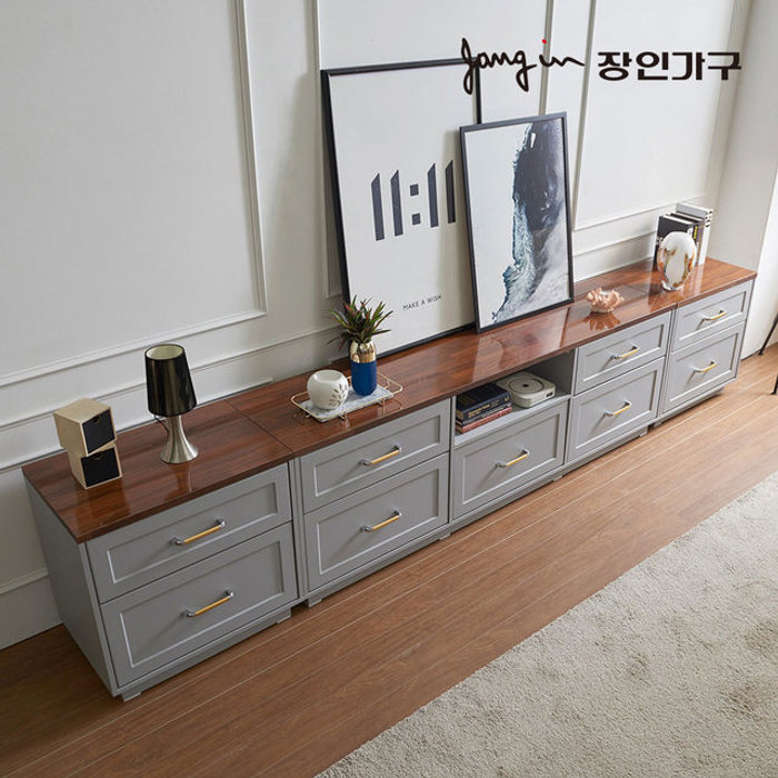 장인가구 [비밀특가] 루시퍼 그레이 다용도 수납 3000 거실장 세트A