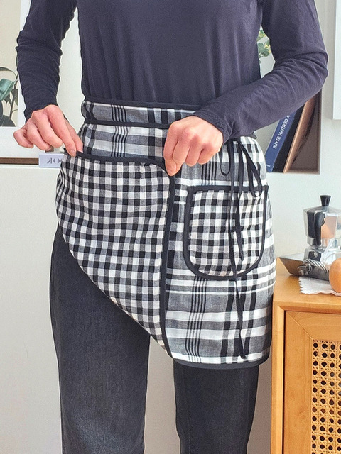 누아(nu.a) 양면 체크 리버시블 4중거즈 허리앞치마