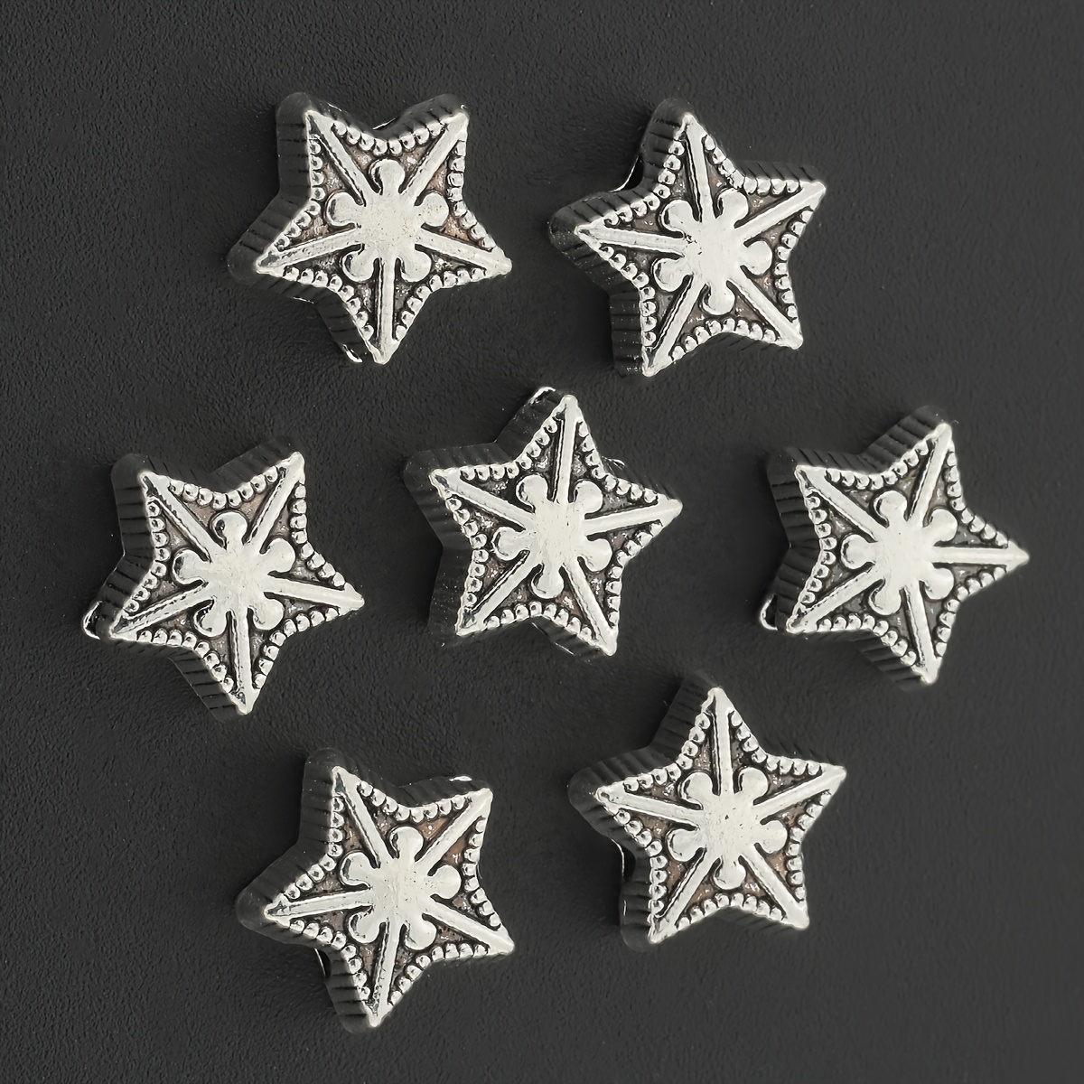 TEMU 20개 펜타그램 패턴 스페이서 비즈 합금 빈티지 엠보싱 레이스 직선 구멍 크로스오버 루즈 스페이서 비즈 다각형 기하학적 모양 드릴 비즈 DIY 주얼리 만들기용 장식 위치 지정 비즈, 팔찌, 목걸이, 펜던트, 열쇠고리, 의류 액세서리 및 공예 용품 선물 비즈 & 비즈 세트