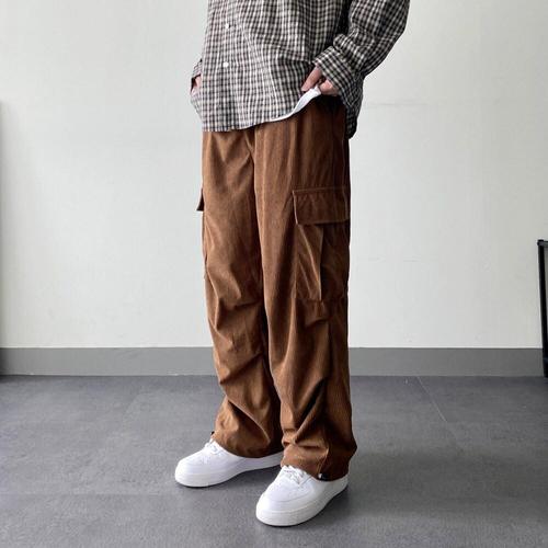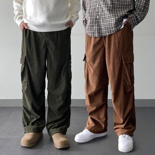 [모노폴로지]1+1 골덴 벌룬 편한바지 코듀로이 와이드 카고 건빵 파라슈트 밴딩 통바지 3color