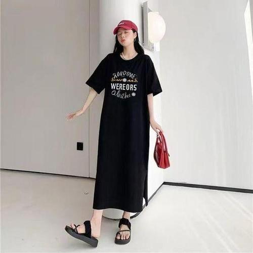 [다잇템_패션]여성 필기체 검정 빅사이즈 캐쥬얼 롱 원피스