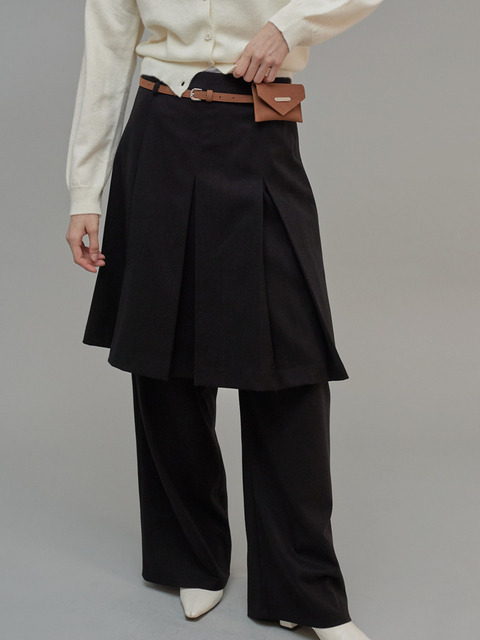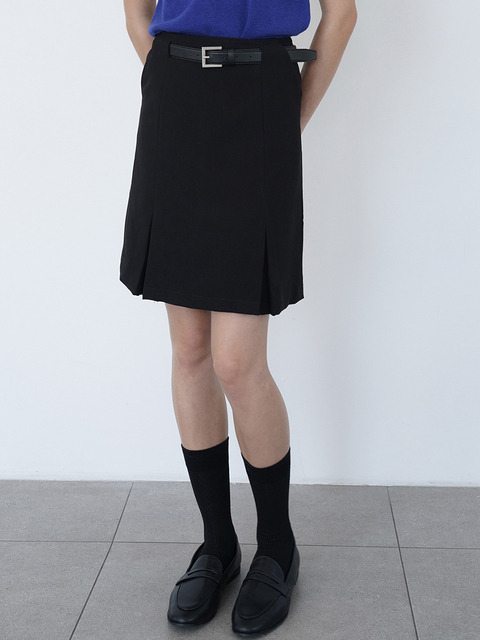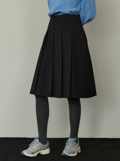 [프롬웨얼] 모던 플리츠 미디스커트 검정