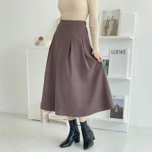 페이퍼먼츠 데일리 언발 플리츠 미디 스커트 01449
