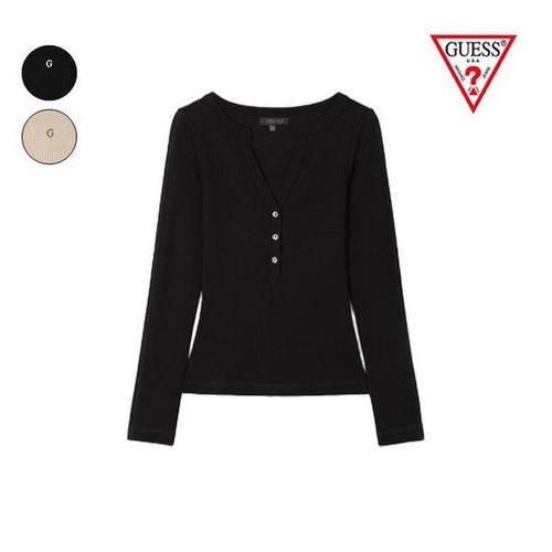 [게스(진)]여성 V헨리넥 버튼 긴팔티(YP3K2311)